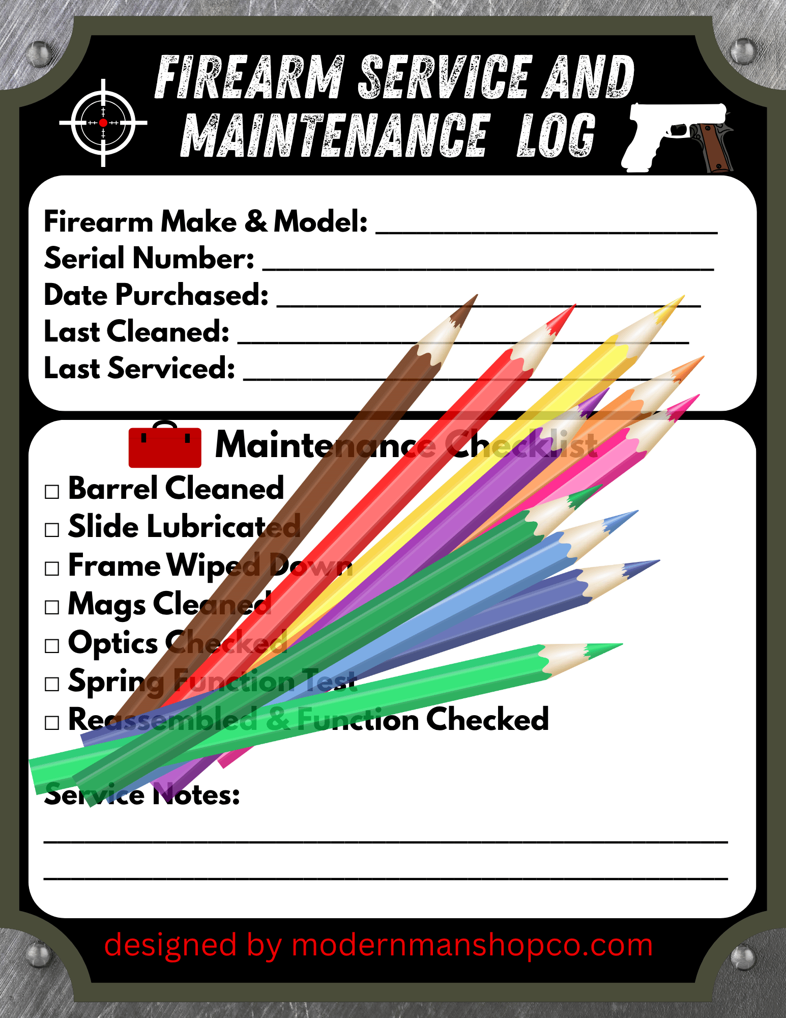 Gun Service Log Bundle - Modern Man Shop Co|Printable