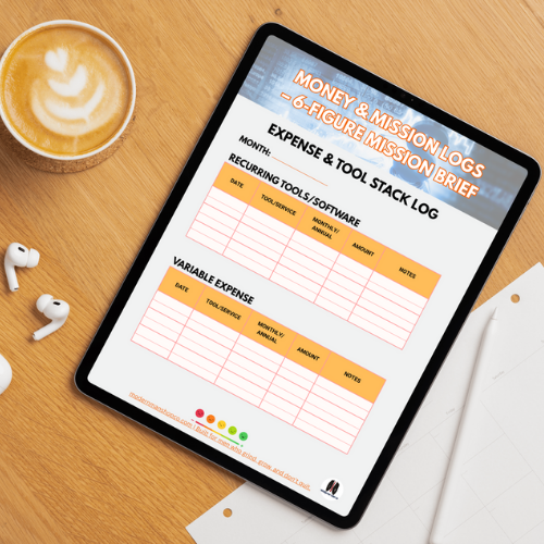 - Expense & Tool Stack Log: Keep tabs on every dollar out, and identify tools to keep or cut.