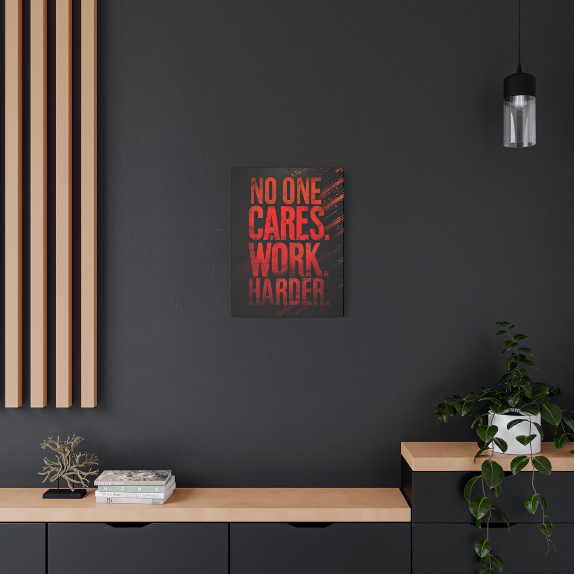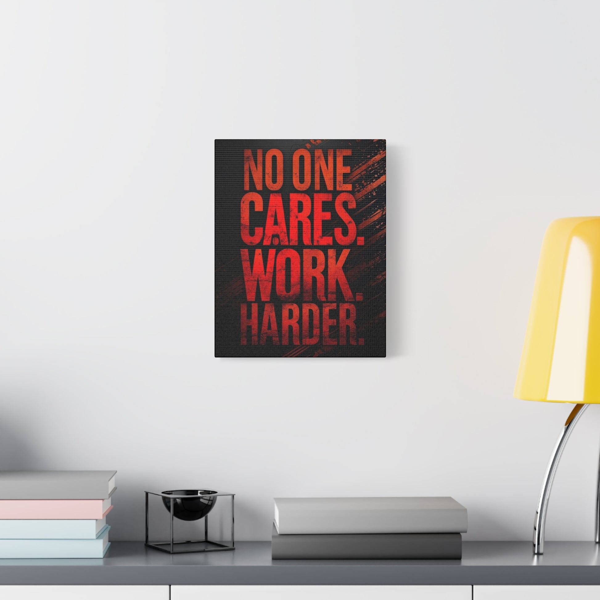 Motivational Canvas Wall Art — “No One Cares. Work Harder.”