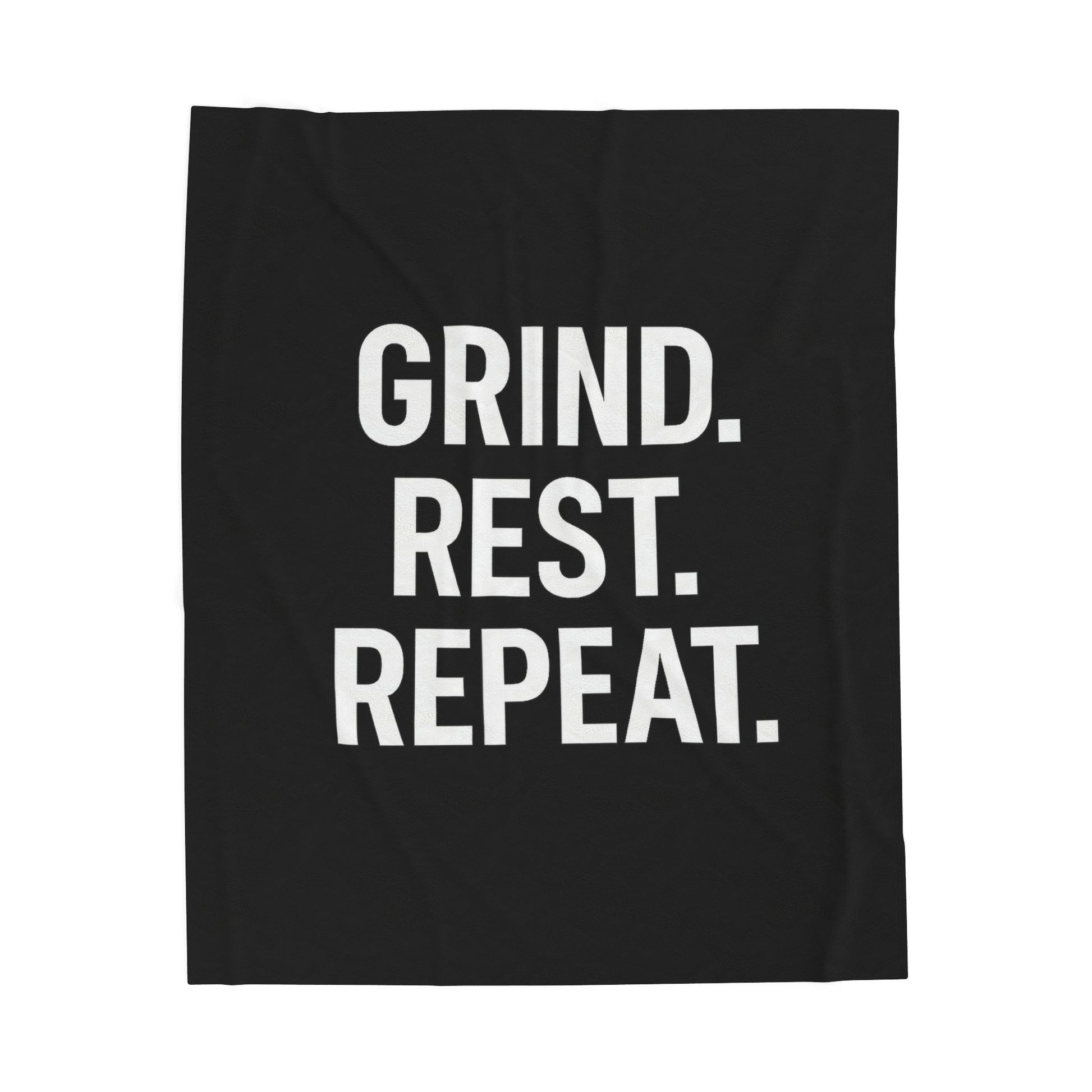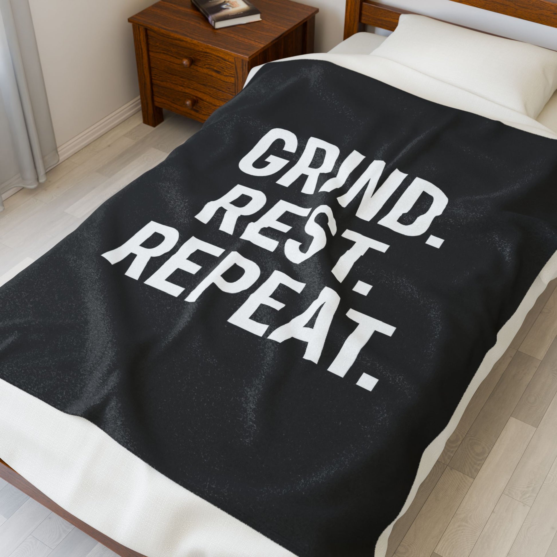 Motivational Velveteen Plush Blanket — "GRIND. REST. REPEAT." Comfort Throw