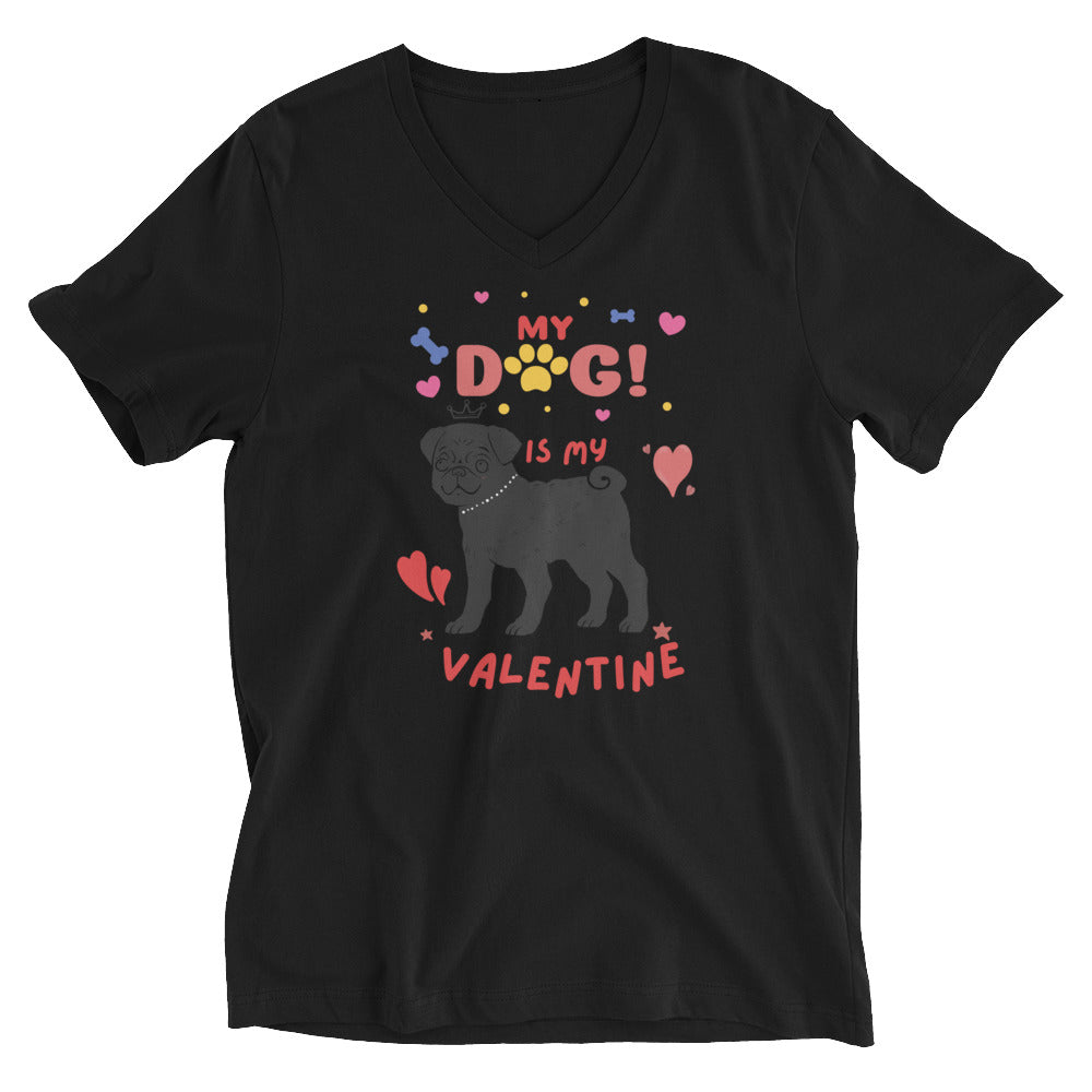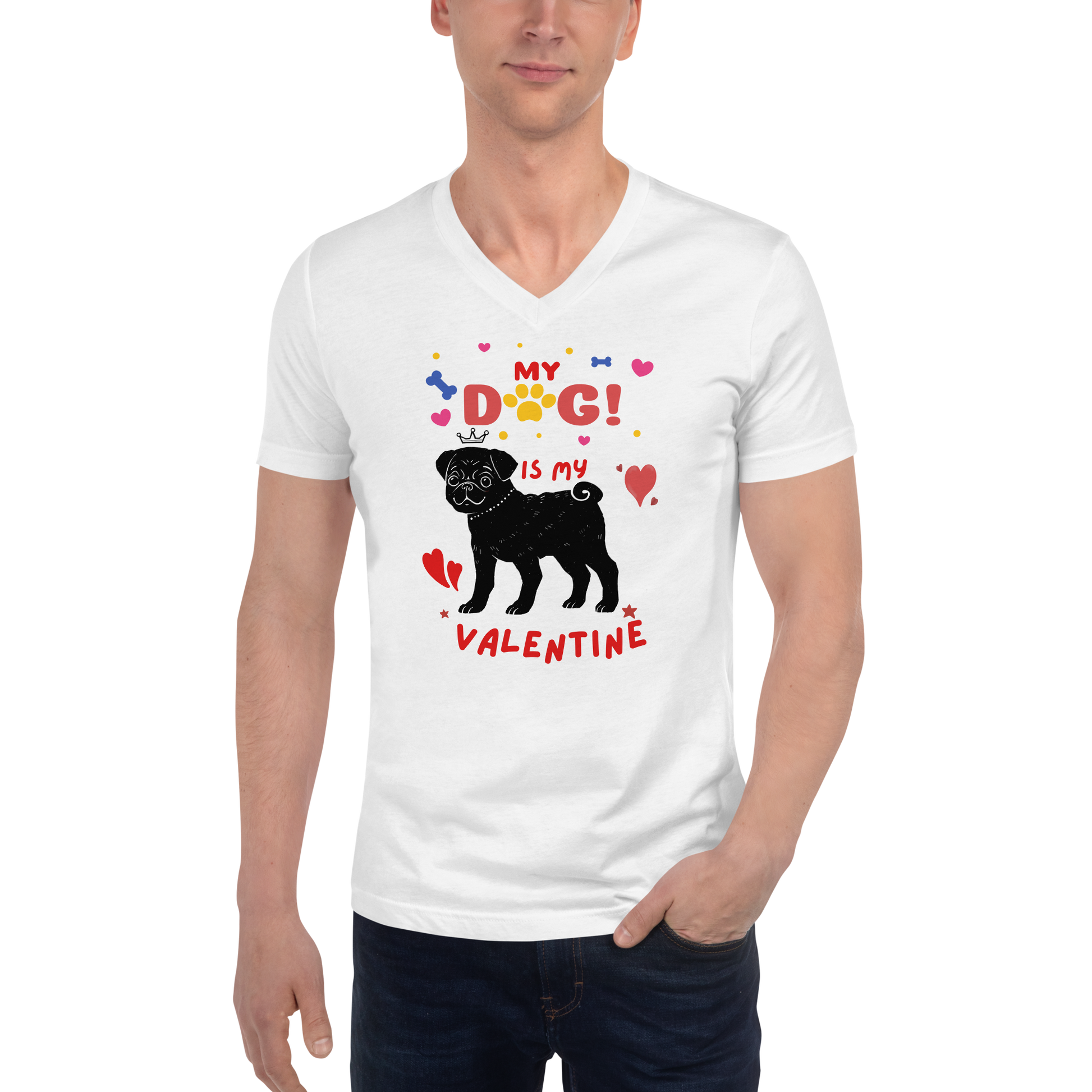 My Dog is my Valentine Unisex Short Sleeve V-Neck T-Shirt
