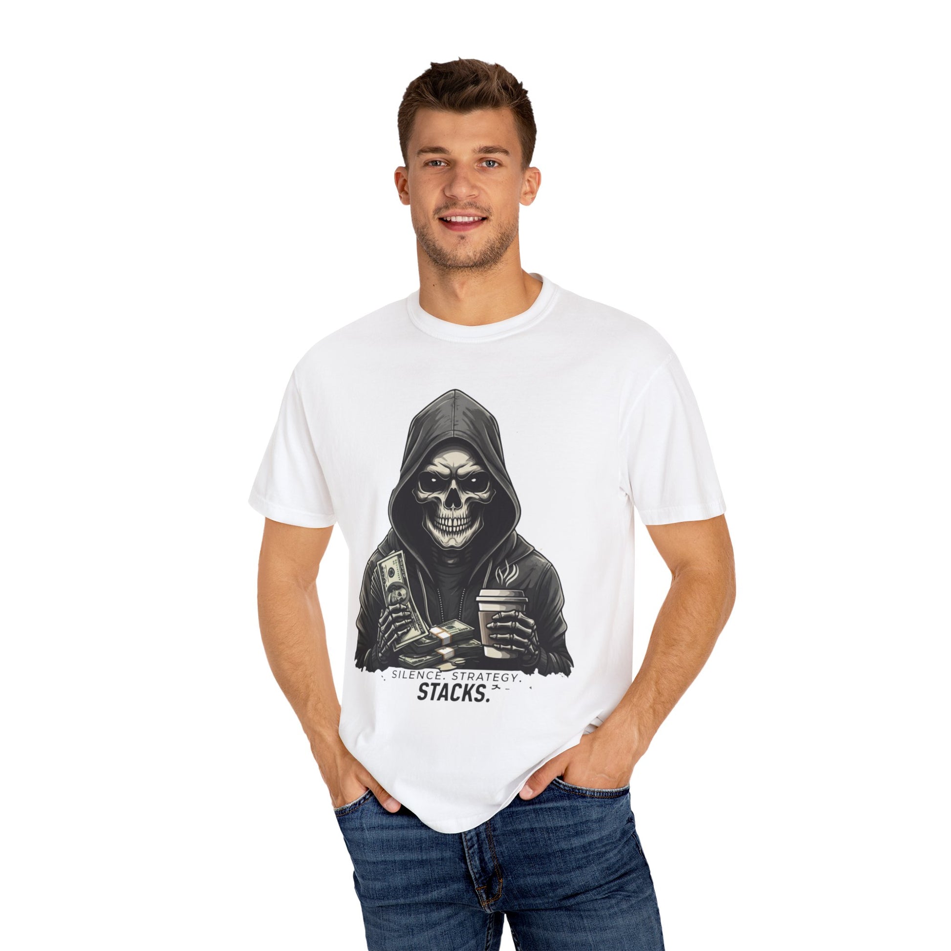 Unisex Garment-Dyed T-Shirt - 'Silence Strategy Stacks' Graphic Tee