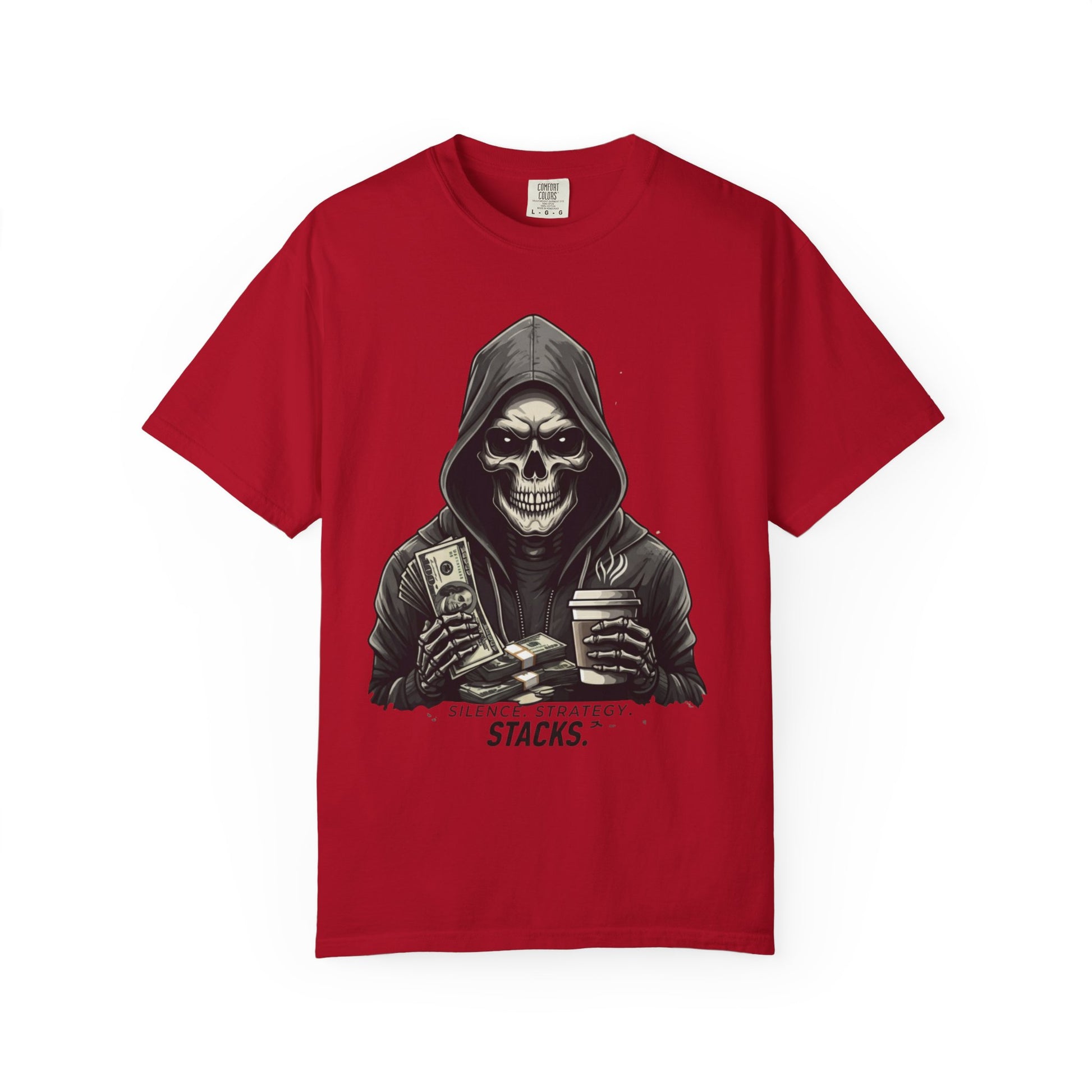 Make a bold statement with the Silence Strategy Stacks skull hoodie. Featuring a striking design for the fearless and focused, combines edgy style with premium comfort. Perfect for those who value strategy and determination.Introducing a unique unisex garment-dyed T-shirt that combines comfort and style. Made from 100% ring-spun US cotton, this tee offers a soft texture and vibrant colors, perfect for casual outings or semi-formal gatherings. Its relaxed fit and classic crew neckline make it an ideal canvas for personal expression, whether layered with your favorite jacket or worn alone. This shirt resonates with individuals who appreciate quality and a laid-back lifestyle—perfect for artists, entrepreneurs, or anyone wanting to make a statement with their attire. Suitable for everyday wear, it's particularly relevant for holidays, birthdays, and summer gatherings, allowing you to express your unique vibe. Celebrate life’s special moments with this eye-catching piece.