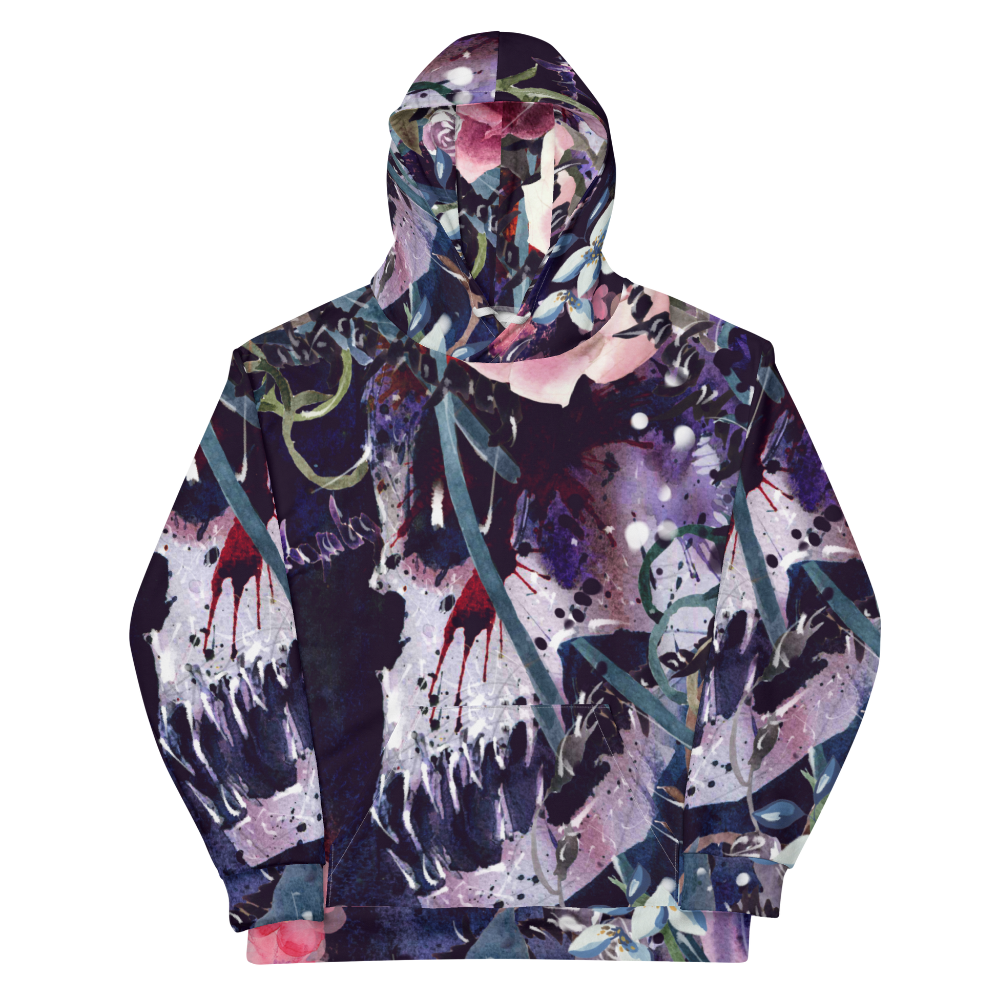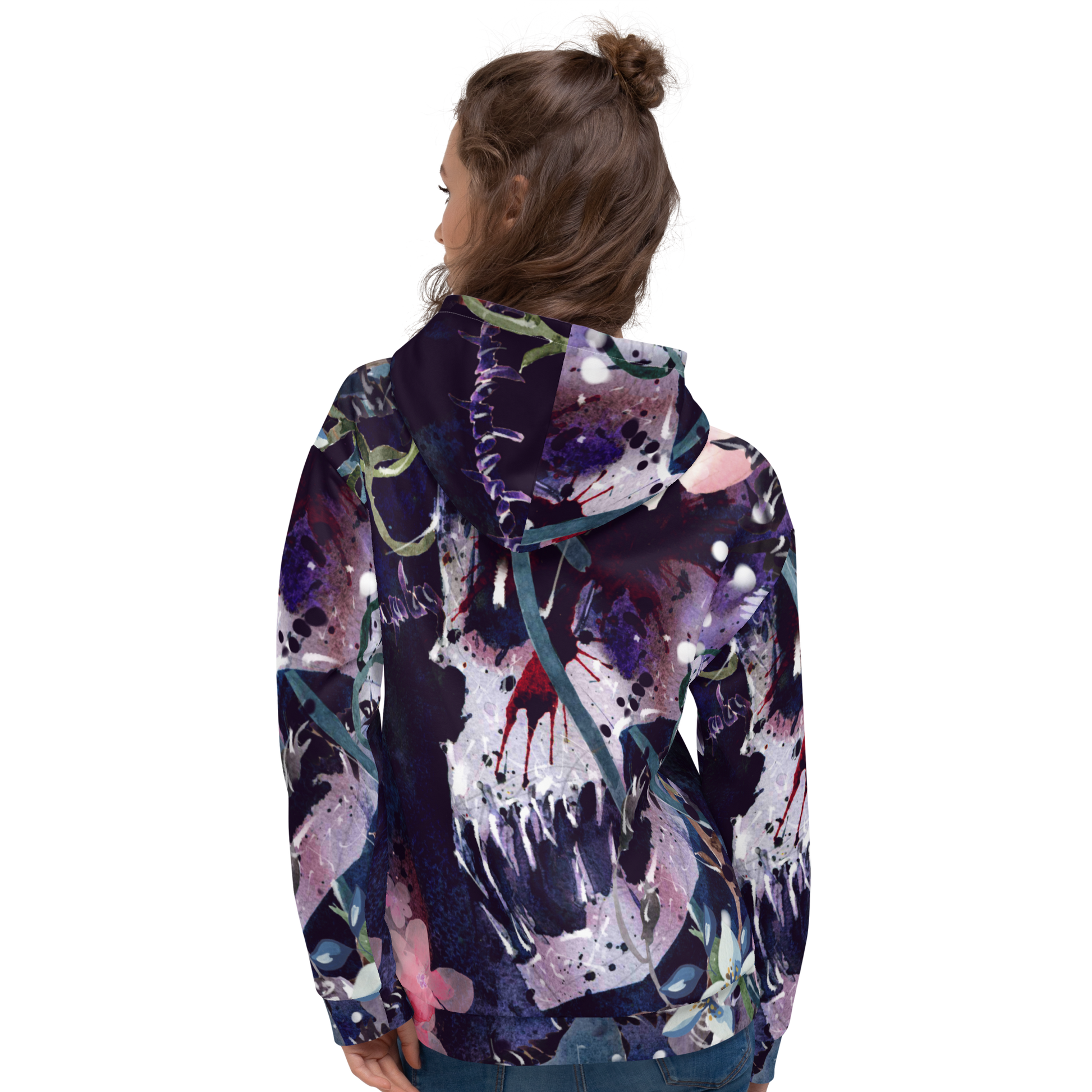 WATERCOLOR SKULL FLORAL ALL OVER PRINT UNISEX HOODIE
